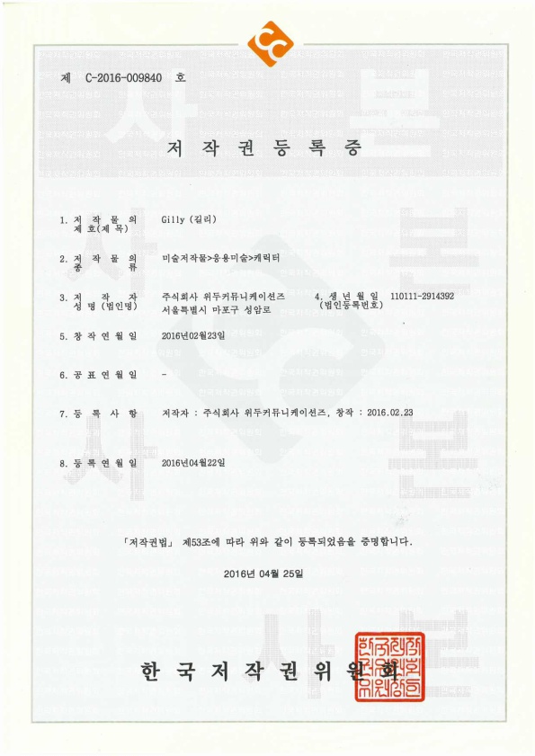 [한국/저작권] 길리 페이지 정보 작성자 WeDu 댓글 0건 조회 5,894회 작성일 19-05-30 19:07 본문 2016-04-22 저작권 C-2016-009840 길리 / 미술저작물>응용미술>캐릭터 List Previous[한국/저작권] 나무트 19.05.30 Next[한국/저작권] 리안의 수학 모험 19.05.30